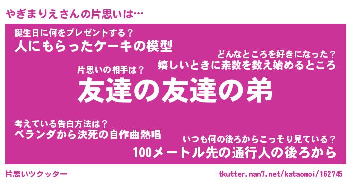 | 伝説のあだ名 | 『封印されしスナイパーやぎまりえ』 |