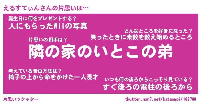 | 男性向けラノベタイトル風あだ名 | 『えるすてぃんの憂鬱』 |