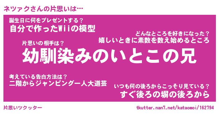 | ファンタジー風あだ名 | 『ネツフェル』『エターナルネツァクー』 |