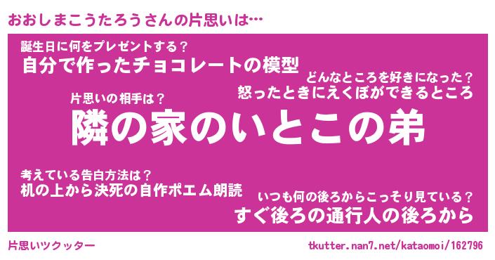 | 男性向けラノベタイトル風あだ名 | 『おおしまこうたろうの憂鬱』 |