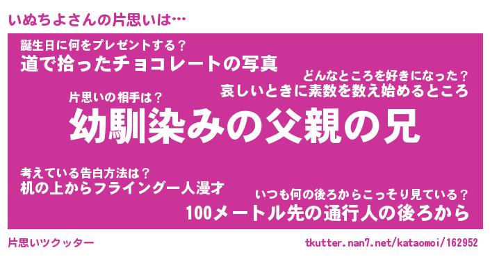 | ヘコむあだ名 | 『いぬにゅー』『牛乳』『いぬお』 |