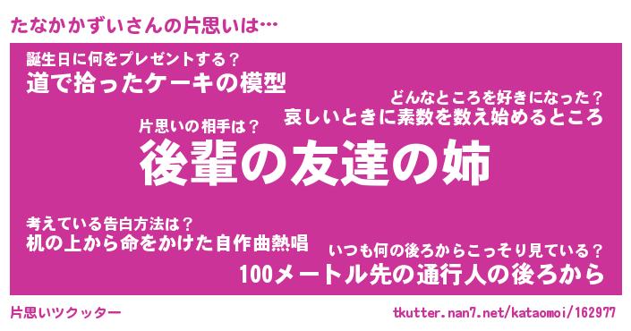 | ヒーロー風カッコイイあだ名 | 『スーパータナカカズイ』『魔戒騎士タナ』 |