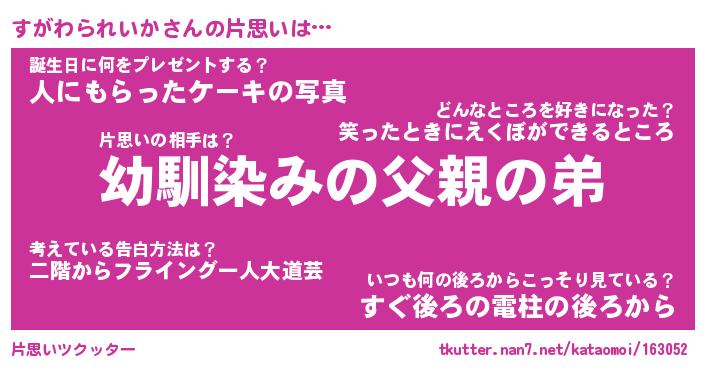 | 男性向けラノベタイトル風あだ名 | 『すがわられいかの憂鬱』 |