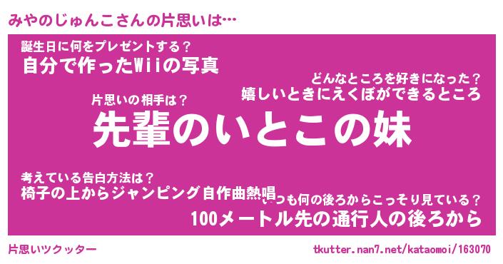 | 胡散臭い通販商品みたいなあだ名 | 『モテモテ間違いなし霊験あらたかなお札…その名も「みやのじゅんこ」』 |