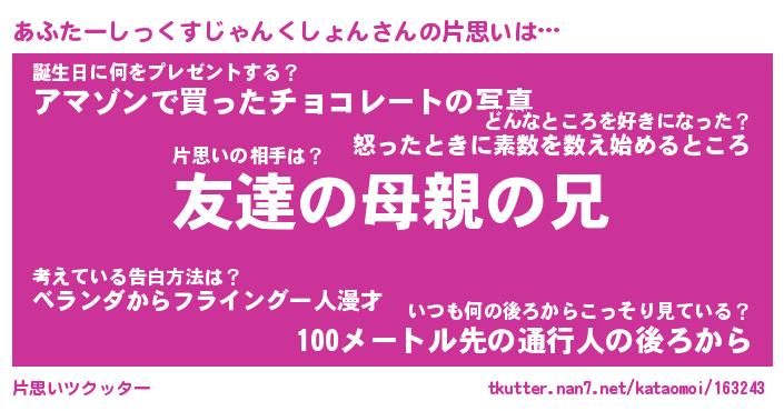 | ヘコむあだ名 | 『あふにー』『豆乳』『あふお』 |