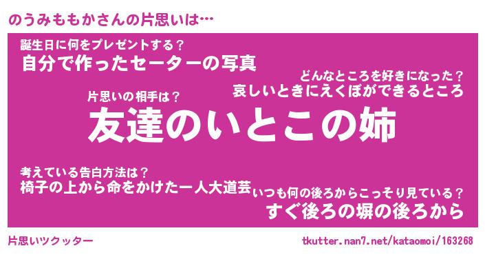| ヘコむあだ名 | 『のうにゅー』『つくし』『のう太郎』 |