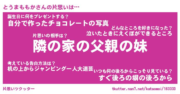 | 胡散臭い通販商品みたいなあだ名 | 『必ず成功する水晶球…その名も「とうまももか」』 |