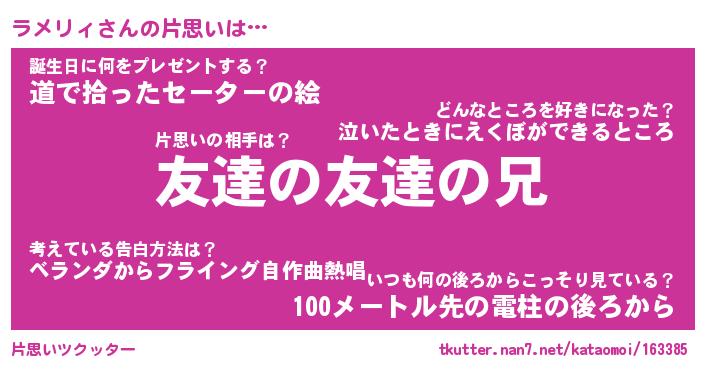 | ファンタジー風あだ名 | 『ラメフェル』『エターナルラメリィー』 |