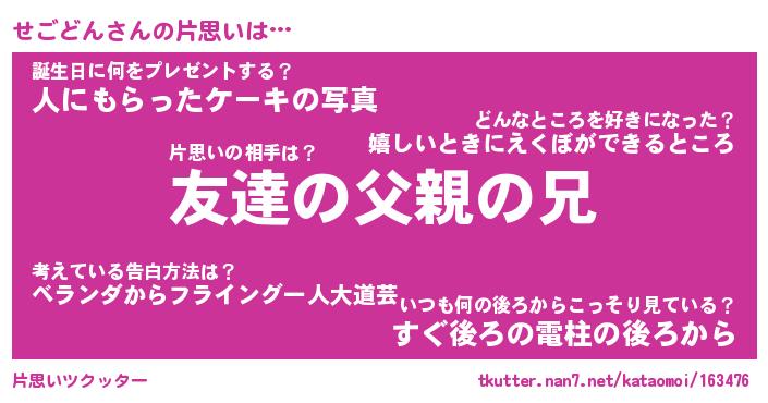 | ツイッター | せごどんさんのツイッターID『fukuyoka_idle』 |