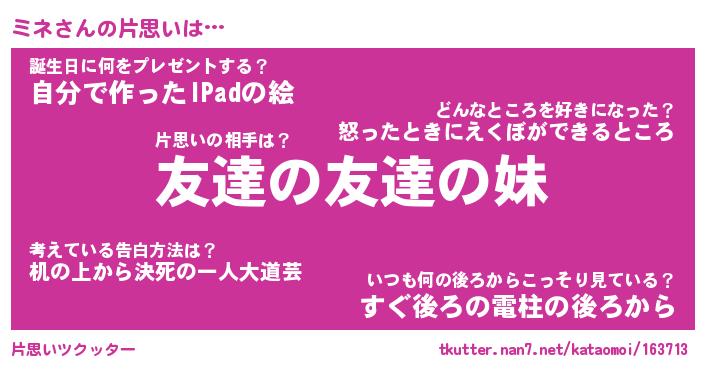 | ファンタジー風あだ名 | 『ミネフェル』『エターナルミネー』 |