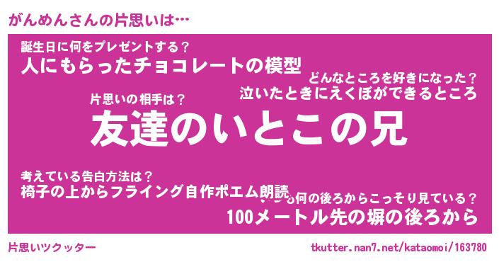 | 意味不明あだ名 | 『ペロリンがんめん』『永久保存がんめん』 |
