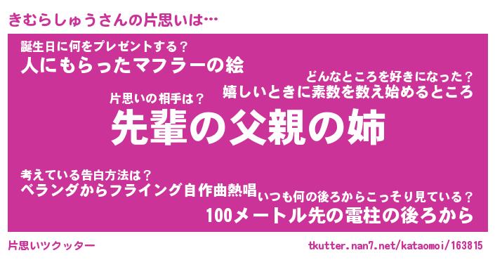 | 男性向けラノベタイトル風あだ名 | 『きむらしゅうの憂鬱』 |