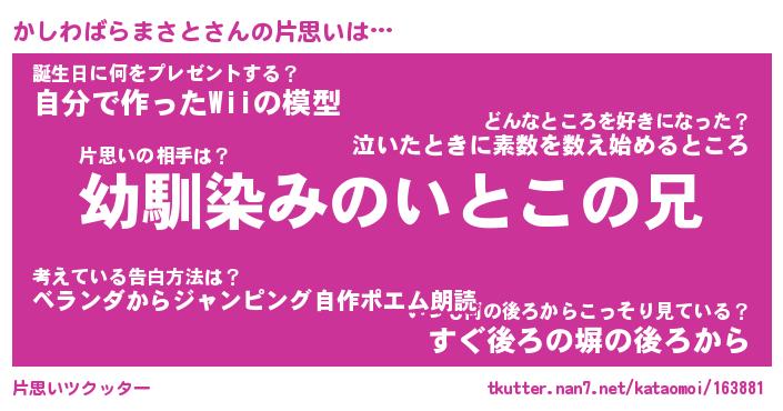 | 伝説のあだ名 | 『伝説のスナイパーかしわばらまさと』 |