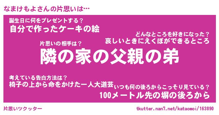 | ヘコむあだ名 | 『なまにゅー』『つくし』『なまっぺ』 |