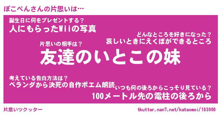 | ヘコむあだ名 | 『ぽこにゅー』『酢こんぶ』『ぽこを』 |