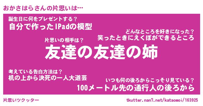 | ヘコむあだ名 | 『おかっふぃ~』『つくし』 |