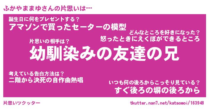 | 伝説のあだ名 | 『伝説のスナイパーふかやままゆ』 |