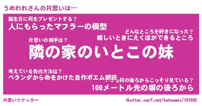 | ポケモン風あだ名 | 『ウメチュウ』『ウメワダネ』 |