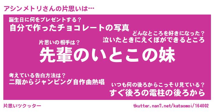 | 胡散臭い通販商品みたいなあだ名 | 『モテモテ間違いなし霊験あらたかなお札…その名も「アシンメトリ」』 |