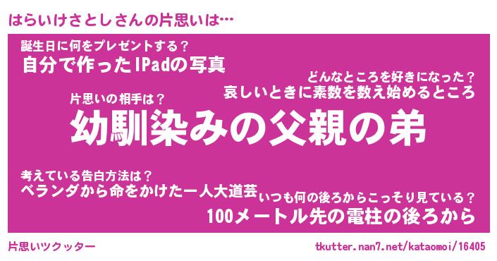 | 胡散臭い通販商品みたいなあだ名 | 『必ず成功する水晶球…その名も「はらいけさとし」』 |