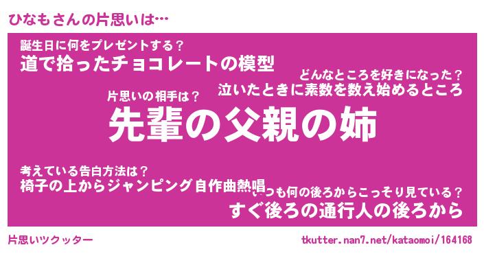 | 胡散臭い通販商品みたいなあだ名 | 『モテモテ間違いなしブレスレット…その名も「ひなも」』 |