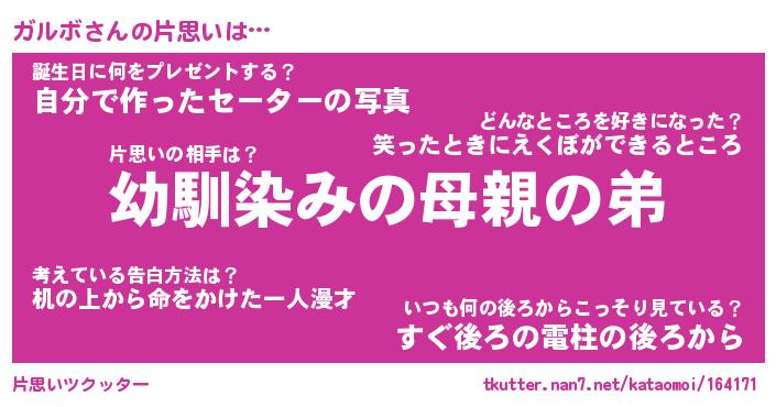 | ヘコむあだ名 | 『ガルにー』『なまこ酢』『ガルお』 |
