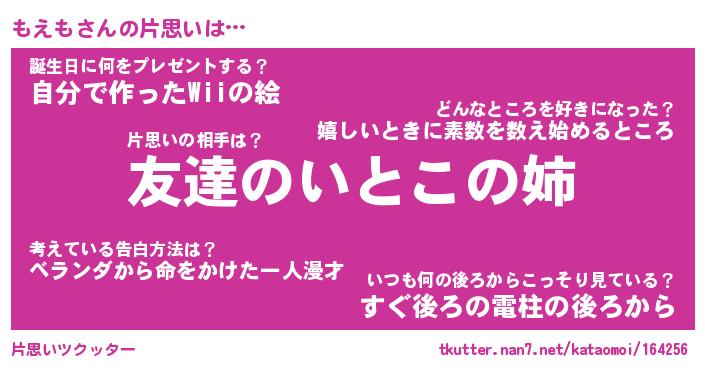 | 意味不明あだ名 | 『ペロリンもえも』『もえもフォーエバー』 |