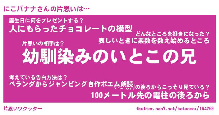 | 男性向けラノベタイトル風あだ名 | 『にこバナナの憂鬱』 |