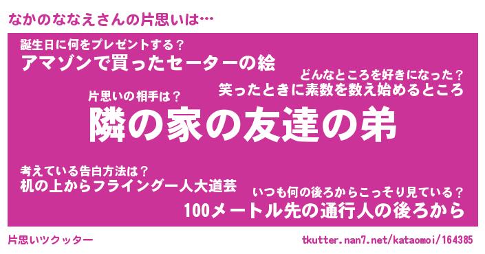 | 男性向けラノベタイトル風あだ名 | 『なかのななえの憂鬱』 |