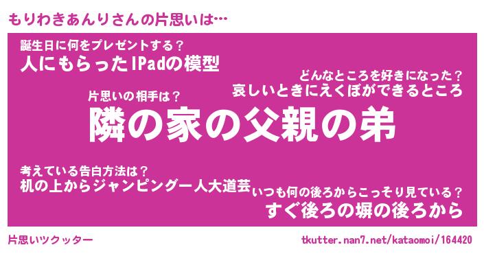 | 胡散臭い通販商品みたいなあだ名 | 『必ず成功する水晶球…その名も「もりわきあんり」』 |