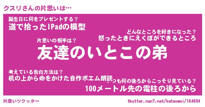 | ヘコむあだ名 | 『クスにゅー』『豆乳』『クスを』 |