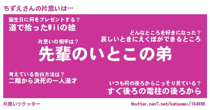 | ヘコむあだ名 | 『ちずもー』『つくし』『ちずお』 |