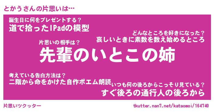 | ヘコむあだ名 | 『とかにゅー』『牛乳』『とかぷりん』 |