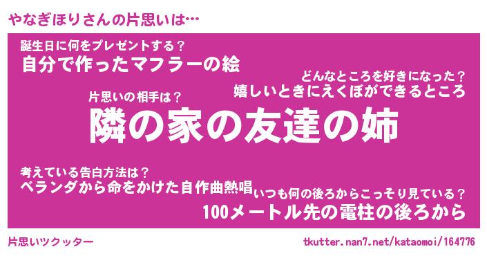 | ヘコむあだ名 | 『やなっふぃ~』『つくし』 |
