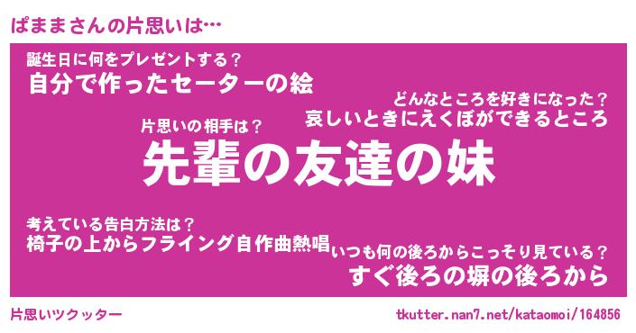 | ヘコむあだ名 | 『ぱまっふぃ~』『なまこ酢』 |