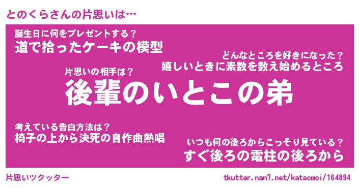 | ヘコむあだ名 | 『とのもー』『豆乳』『との太郎』 |