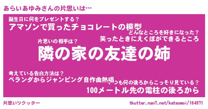 | 肩書あだ名 | 『あらいあゆみ御曹司』 |