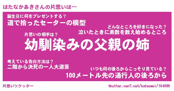 | 男性向けラノベタイトル風あだ名 | 『はたなかあきの憂鬱』 |