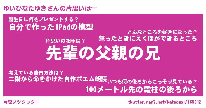 | ヘコむあだ名 | 『ゆいにゅー』『つくし』 |