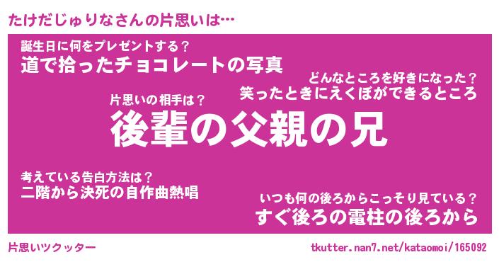 | ヘコむあだ名 | 『たけにゅー』『豆乳』『たけっ子』 |