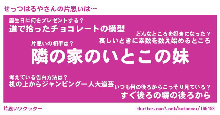 | 恥ずかしいあだ名 | 『プリティーせっつはるや』『せっっちょ』 |