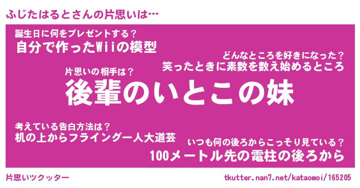 | ヘコむあだ名 | 『ふじもー』『つくし』『ふじお』 |