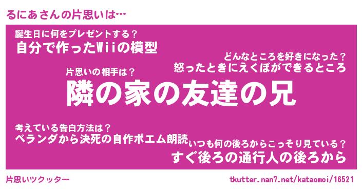 | 胡散臭い通販商品みたいなあだ名 | 『必ず成功する霊験あらたかなお札…その名も「るにあ」』 |