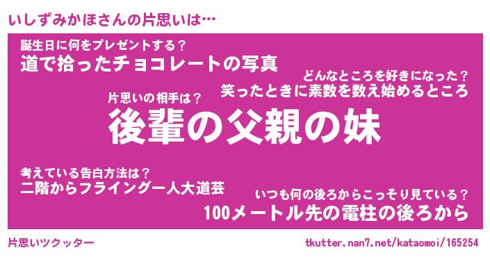 | 胡散臭い通販商品みたいなあだ名 | 『モテモテ間違いなし水晶球…その名も「いしずみかほ」』 |