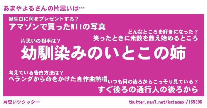 | 男性向けラノベタイトル風あだ名 | 『あまやよるの憂鬱』 |