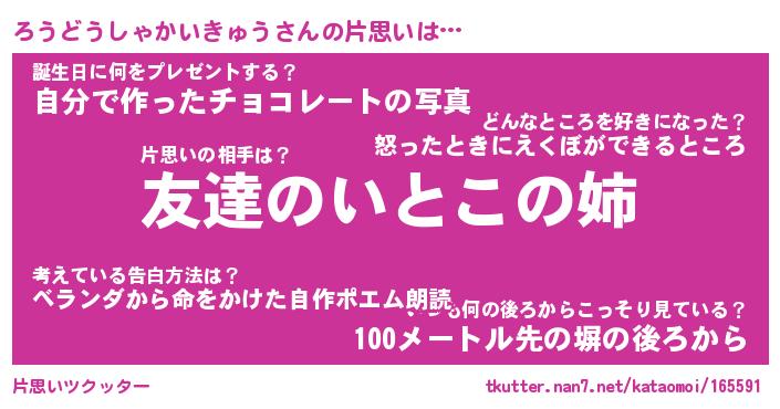 | 意味不明あだ名 | 『ペロリンろうどうしゃかいきゅう』 |