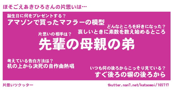 | 胡散臭い通販商品みたいなあだ名 | 『モテモテ間違いなしブレスレット…その名も「ほそごえあきひろ」』 |