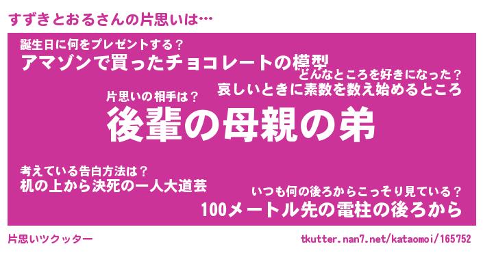 | ヘコむあだ名 | 『すずにー』『なまこ酢』『すず太郎』 |