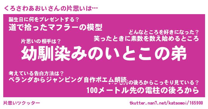 | 伝説のあだ名 | 『伝説のスナイパーくろさわあおい』 |