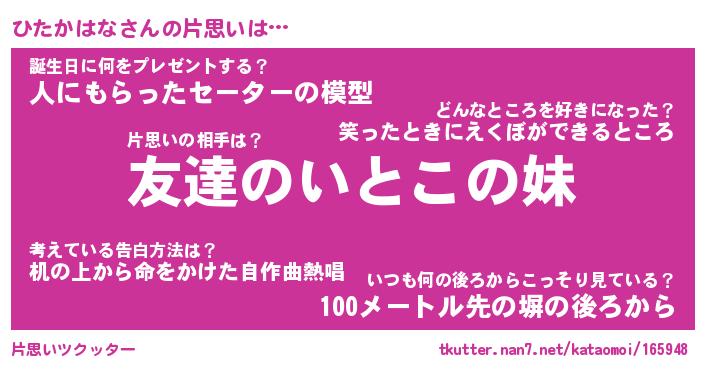 | ファンタジー風あだ名 | 『ヒタフェル』『エターナルヒタカハナー』 |